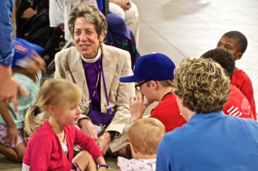I love this picture of Presiding Bishop Katharine Jefferts-Schori interacting with children on the floor of the Convention worship space prior to Sundays Eucharist. She has preserved and strengthened our church for the future they represent. We will continue to build on this foundation. Thanks be to God.